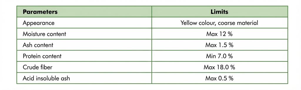 Free from adulterants, fermented smell, dirt, and extraneous matter.